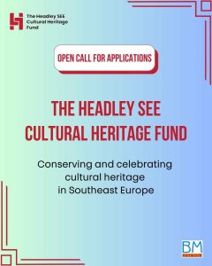 Fondi Headley për Trashëgiminë Kulturore në Evropën Juglindore ka kënaqësinë të shpallë thirrjen e dytë për aplikime, duke ftuar organizatat jofitimprurëse dhe institucionet publike nga Evropa Juglindore (muze, biblioteka, arkiva, galeri) të paraqesin propozime projektesh të fokusuara në ruajtjen, promovimin dhe përdorimin e qëndrueshëm të trashëgimisë kulturore.