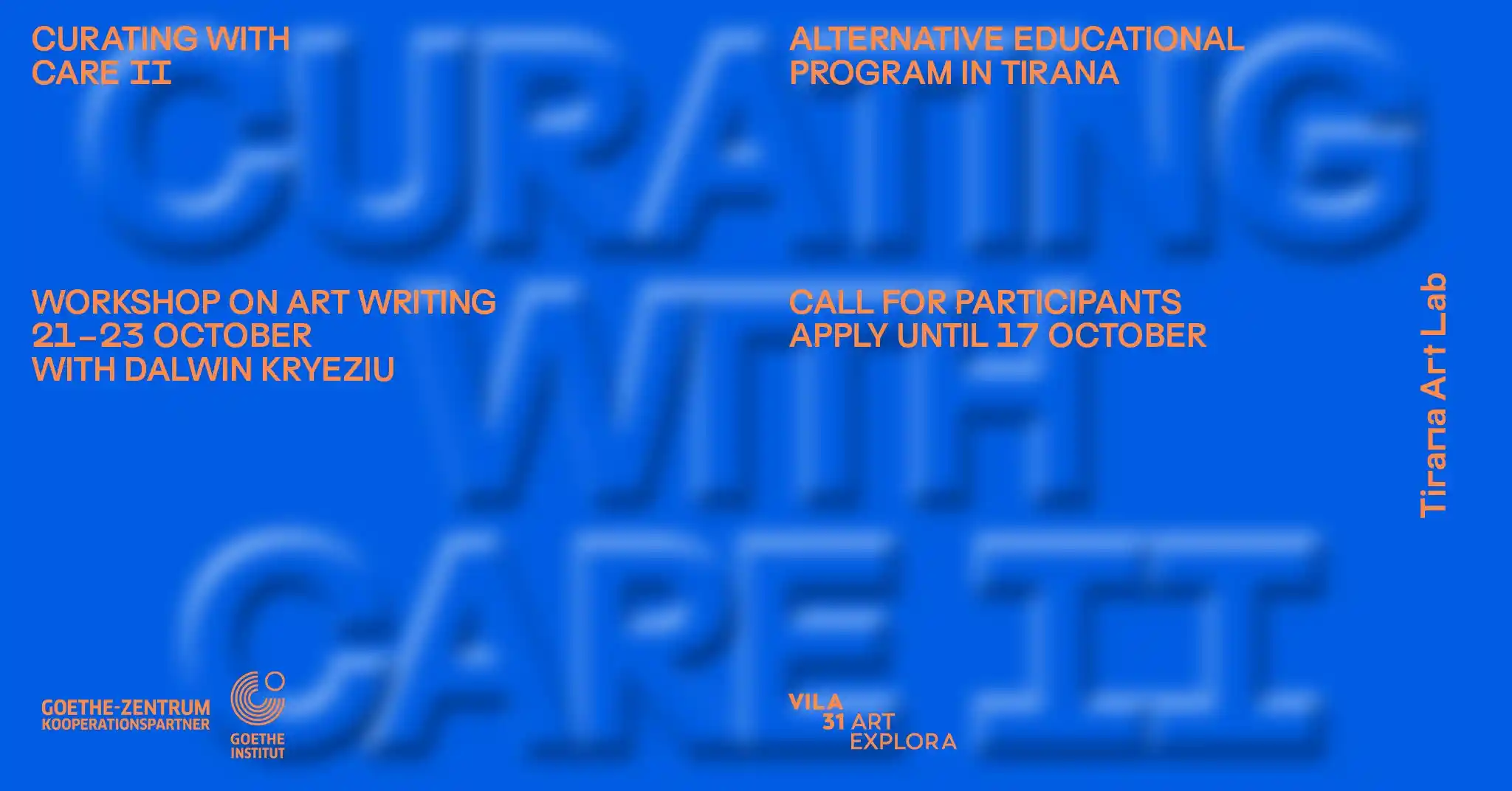 This workshop is made possible with the support of Goethe Zentrum Tirana and is part of Curating with Care II, alternative educational program in Tirana a program by Tirana Art Lab – Center for Contemporary Art.