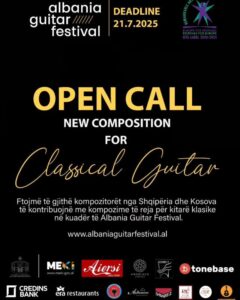 📣 Albania Guitar Festival shpall thirrjen e hapur për kompozitorë nga Shqipëria dhe Kosova për të dorëzuar vepra origjinale për kitarë klasike solo.