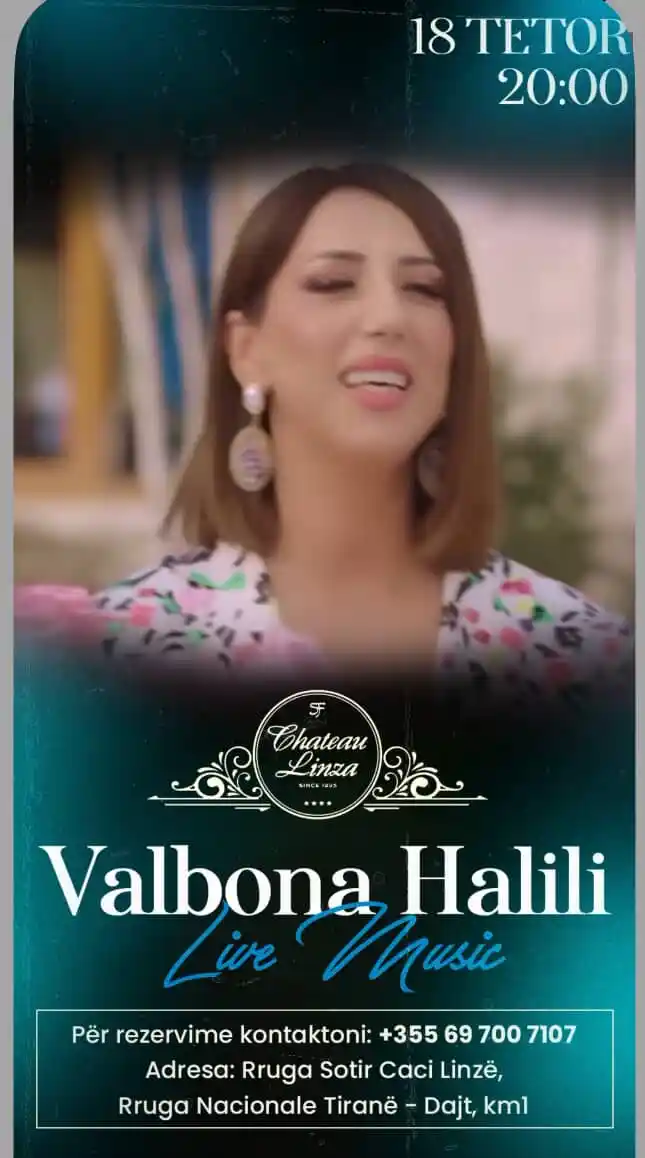 Më 18 Tetor, ora 20:00, ejani të shijoni live muzikën e mrekullueshme të Valbona Halilit nën dritat elegante të Linzës 🌙🎶