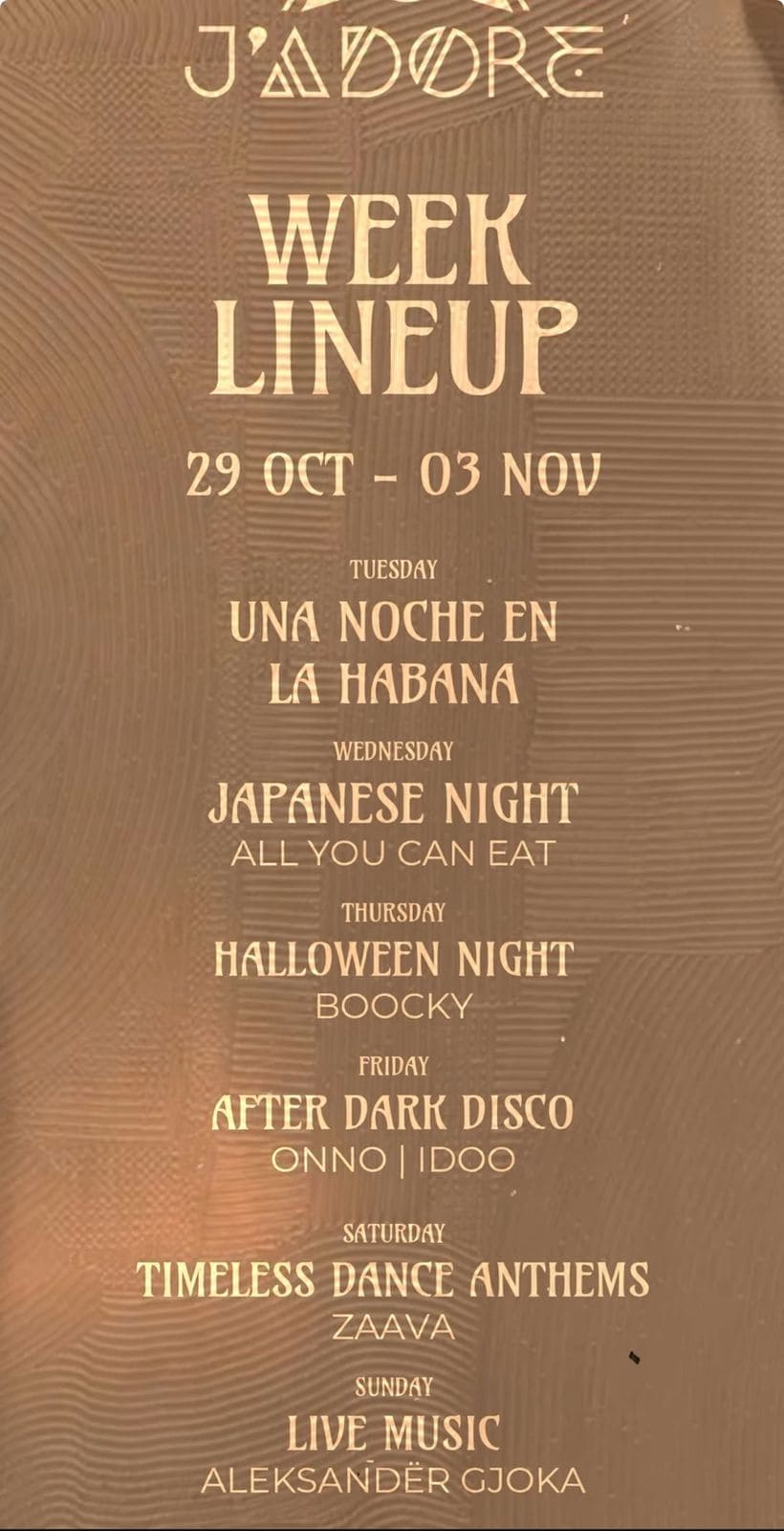 Step into a week of unforgettable vibes 🌟 From endless flavors to hauntingly good parties, timeless beats, and live music magic, every night has something special in store. Join us Oct 29 – Nov 3 and make memories that last!