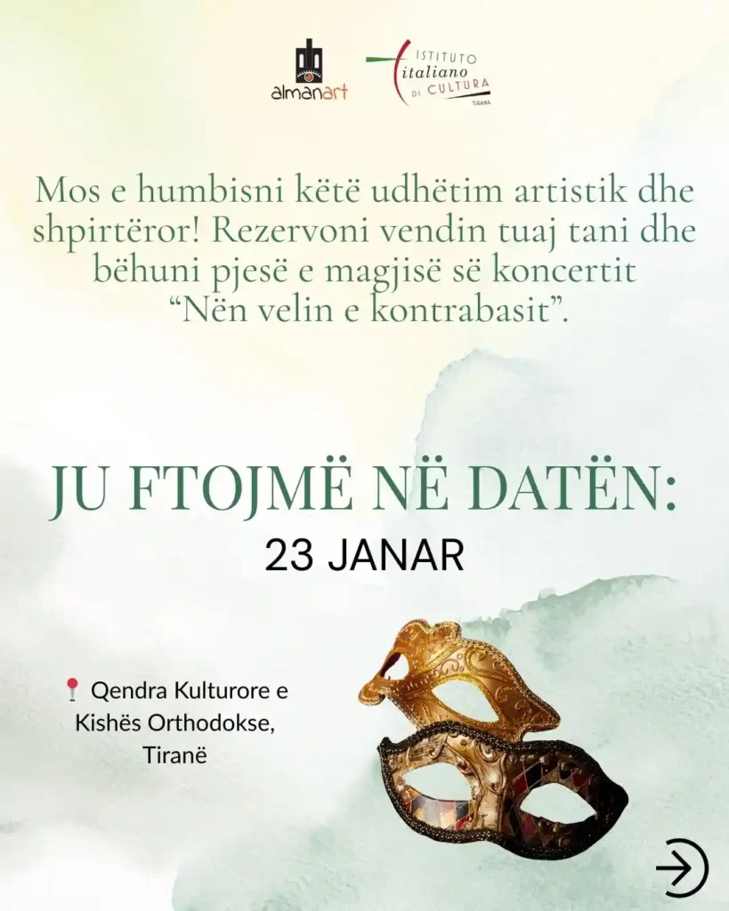 Ky koncert ju fton të hyni në botën e “Dantes” dhe të përjetoni udhëtimin e tij nga ferri tek parajsa, përmes tingujve të kontrabasit dhe fuqisë së fjalëve.
